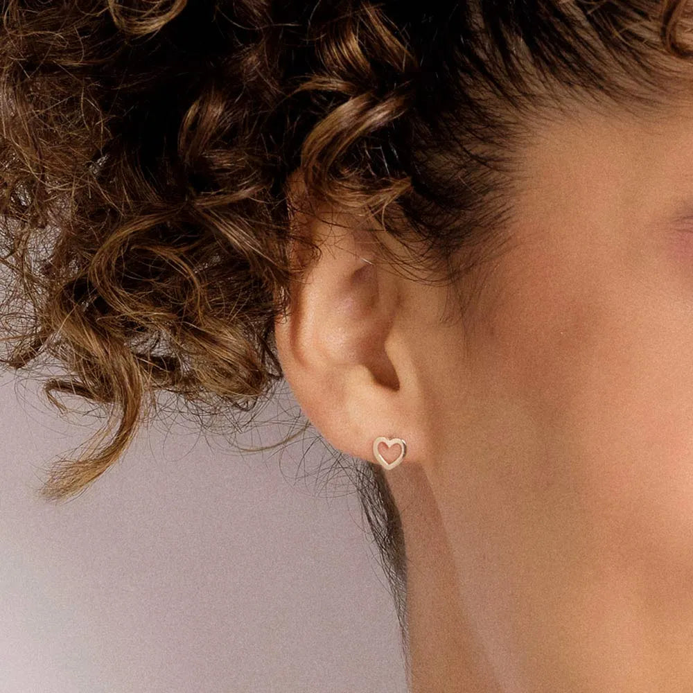 BOUCLES D’OREILLES ROMMANEL CŒUR DEUXIÈME TROU EN PLAQUÉ OR 18 CARATS (0,6 CM X 0,6 CM)