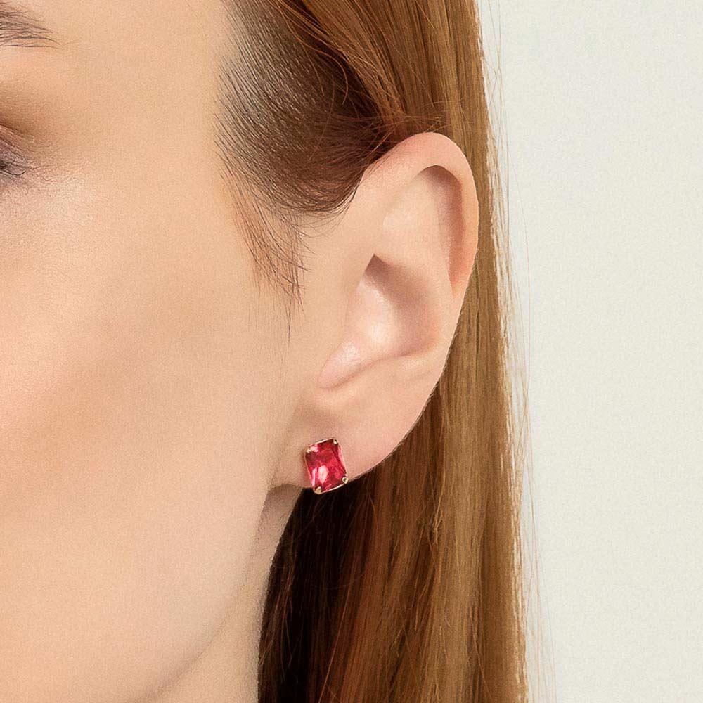 Ces boucles d’oreilles Rommanel en plaqué or 18 carats mettent en valeur deux cristaux rectangulaires de 6 x 8 mm, offrant un éclat raffiné et moderne.