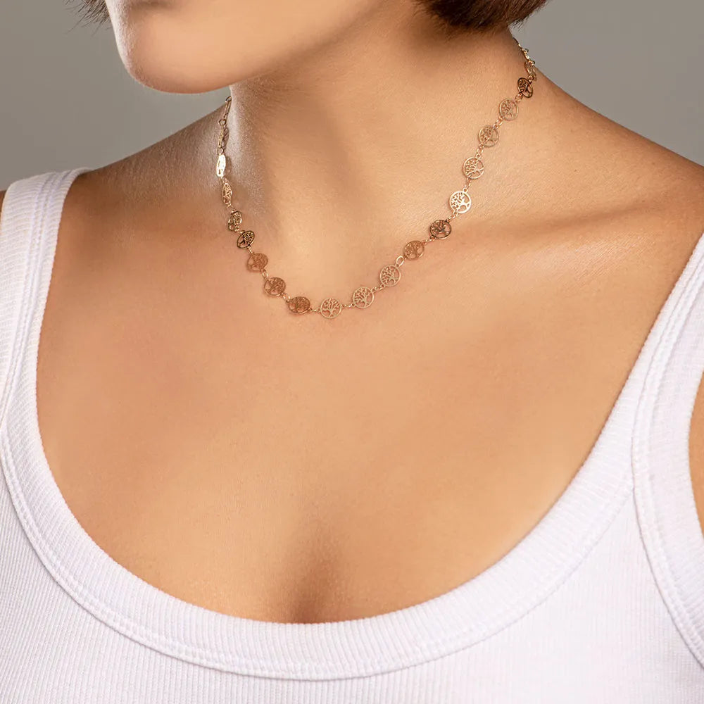 COLLIER ARBRES DE VIE PLAQUÉ OR 18K – LONGUEUR 42 CM