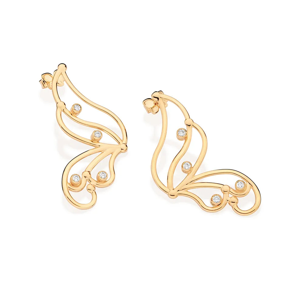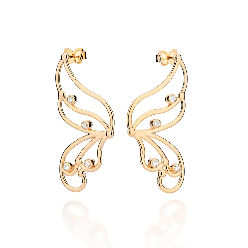 Ces maxi boucles d’oreilles Rommanel en plaqué or 18 carats adoptent un design papillon ajouré, élégant et aérien, délicatement rehaussé de zircons scintillants de 2 mm.